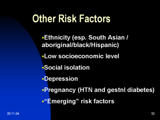 | There is currently little data to demonstrate links between most of the emerging risk factors and risk level in children, but those children living in poverty or low socioeconomic circumstances have definitely been identified as having higher levels and greater numbers of risk factors, not dissimilar to the general population. |