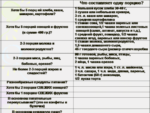 Здорово ли Ваше питание? Вспомните, что Вы ели вчера, и проанализируйте рациональность питания. ЧИТАЙТЕ 1 БАЛЛ ЗА КАЖДЫЙ ОТВЕТ "ДА". ОТЛИЧНО - 10 БАЛЛОВ - Вы питаетесь рационально! ХОРОШО - 8-9 БАЛЛОВ - у Вас правильное представление о здоровом питании, еще немного и Вы перейдете в разряд "отлично". УДОВЛЕТВОРИТЕЛЬНО - 4-7 БАЛЛОВ - Вы рискуете своим здоровьем, Вам надо пересмотреть свое питание. РИСКОВАННО - 3 И МЕНЕЕ БАЛЛОВ - Вы сильно рискуете своим здоровьем. Постарайтесь изменить свои привычки. Не надо стараться изменить все сразу. Шаг за шагом: одно изменение за другим. Желаем успехов! |