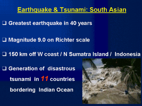 Source: http://earthquake.usgs.gov/ One year ago, Bam earthquake occurred on 26 December 2003 at 01:56:52 UTC* (5:26:52 AM local time at epicenter), with a magnitude of 6.5 on the Richter scale. We provided two earthquake lectures at: http://www.pitt.edu/~super1/lecture/lec13181/index.htm http://www.pitt.edu/~super1/lecture/lec15221/index.htm Please examine these to understand earthquakes. We should be ready always for huge disasters in our communities! * Universal Coordinated Time |