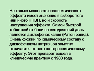 крови. Сильный обезболивающий эффект наблюдается через 20-40 минут и