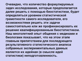 | Эта идейная безграмотность, проявляемая в незнании основных возможностей современной прикладной статистики, приводит к примитивизму выводов, получаемых после анализа нередко бесценных наблюдений. |