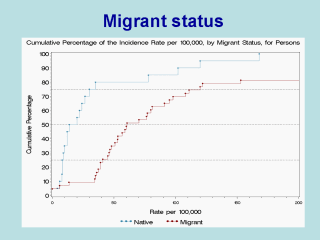 Overall migrant groups displayed elevated incidence of schizophrenia compared to their native-born populations. The migrant to native-born rate ratio median (10% to 90% quantiles) was 4.6 (1.0 to 12.8). Differences were statistically significant.