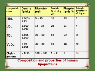 | Most proteins have densities of about 1.3 – 1.4 g/mL and lipid aggregates usually have densities of about 0.8 g/mL. Circulation. 2004 Jun 15;109(23 Suppl 1):III2-7 |