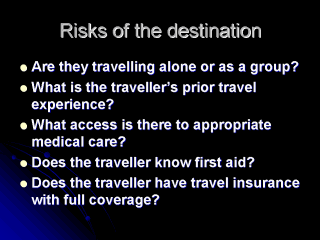 | Information on the risks of the destination needs to supplemented with further information that may modify the risk assessment. |
