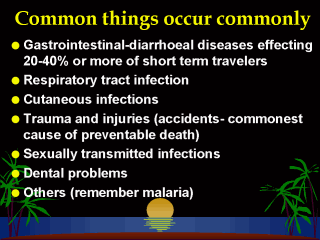 travellers’ diarrhoea, and injuries are important concerns for travellers (Behrens,