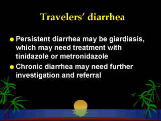 Persistent diarrhea may be a protozoan parasite, such as giardia.