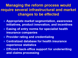 An appropriate health infrastructure is an essential pre-requisite to health insurance reform.
