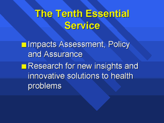 10th Essential Service impacts assessment, policy and assurance. That Essential Service is