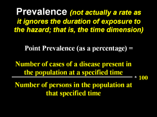 | If prevalence is measured for a period of time, say three months, rather than at a point in time, the population denominator should represent the average population during that period. Care needs to be taken in selecting or estimating the denominator for any epidemiologic measure to avoid overestimation or underestimation of rates or proportions, and to make sure that events are correctly matched to a population-at-risk. |