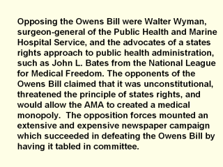 Congress, in 1912, passed the very weak Mann Act creating the U.S. P.H.S.