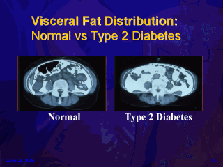 tomographic (CT) scans, the distribution of visceral fat (white areas)