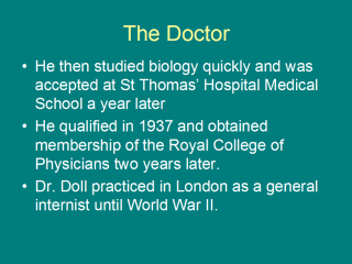 membership in the Royal College of Physicians. Dr. Doll practiced in London