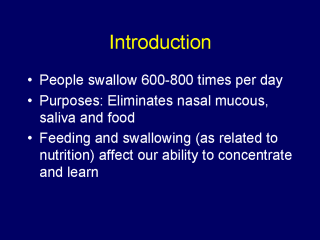 crucial to process, digest, and ultimately use food to provide nutrients for the body. Without nutrients, the body has a hard time being able to function for other, more demanding tasks such as gross motor and fine motor activities, and even more “executive function” tasks such as cognition, attention, focus and communication skills. For example: “If you hadn’t eaten in 24 hours, would you be able to focus on the material that was being presented here?” Probably not. Your body’s primary nutritional needs must be first met. How does all this relate to our children? How can they learn, think, and focus on learning if their bodies are not getting proper nutrition? Failure to feed properly will effect EVERYTHING else they do. |