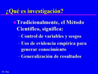 Pero, en general, cuando hablamos de investigación, pensamos "Método Científico" como ciencia es considerada LA forma racional de estudiar y aprender acerca de un fenómeno.
