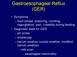 hour test to measure acidity Endoscopy: visualize inside the GI tract, look for injury, obstruction or edema. Barium Swallow or Modified Barium Swallow: can verify reflux. Milk Scan: looks at motility and how long it takes for the stomach to empty. Esophageal Manometry: measures pressure of esophagus to determine if peristalsis is working well. |