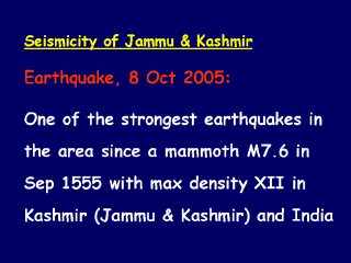 §The earthquake 8 Oct was felt in Islamabad and Lahore, and