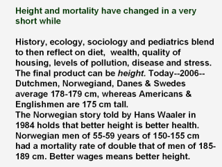 There is a strong negative correlation between adult height and the risk of dying from heart disease. Thus, tallness is a product of good living conditions. Girls and boys about 10 can be the same size. Men stand above women as you know, because of "the adolescent growth spurt" of 2 more years. The role of height has only just begun to attract studies.