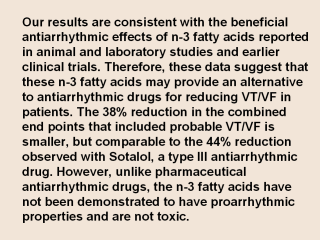 The 28% reduction in the primary end point of our study is similar to the reduction of 29% in the early Burr trial , although lower than the 45% reduction in SCD in the GISSI-Prevenzione trial. If we consider the subset of 236 patients who completed the duration of the trial “on treatment”, we see a similar 48% reduction in SCD (P=0.0060).