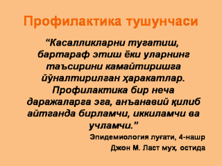сақлаш ва Тиббиет Профилактикаси» 11, 12, 13-нашрларининг