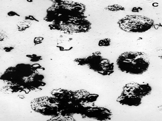 C. By using [³H]substrate at a very high specific activity it can be shown directly by radioautography in the electron microscope that every vesicle is labeled. Micrograph shown at the left is from vesicles labeled with VG in the presence of ASC-PMS. The number of vesicles labeled non-specifically with [³H]acetic anhydride is not significantly different.
