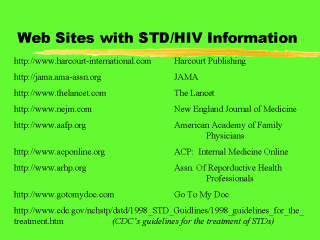 To access web sites with STD/HIV information, please click on on URLs listed on the slide