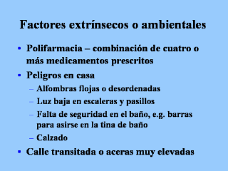 pasamanos), visión pobre, y balance escaso puede causar caídas en