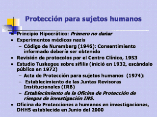 reglamentos del Código de Nuremberg de 1946 obligando que se
