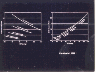 blood pressure, the CHD risk actually fell with increasing diastolic blood pressure