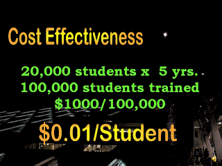 | The cost of teaching world wide is very inexpensive. Students in the Sudan can now learn from one of my lectures from their teachers for less than a penny. |