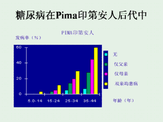 2型糖尿病在包括Pima印第安人的所有人口中有家族聚集性。单亲或双亲患糖尿病,后代糖尿病的