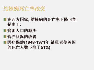 结核病例数正在攀升.还有,那些正经历战争或其它政治原因的资源匮乏,疾病监控和治疗系统已被破坏的国家,如阿富汗和伊拉克,很可能正出现结核感染和死亡增加的情况.