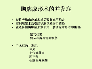 Sauerbruch的胸廓成形术是一项扩大手术,有严重的并发症。空洞填塞术导致较多的并发症。肺尖萎陷术伴第一肋切除相比之下较为理想。即使如此,肺结核的治疗还是有了进一步的进展。适当麻醉后进行支气管内插管,使得肺手术成为可能,这项操作对于病变局限于一侧肺叶的患者尤为有价值