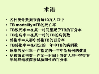 结核的发病率,死亡率都来自给定的某一年内,特定的人群,每10万人中的数据。表现了给定的时间点上的情况。连续的使用这些数据可以反映TB发病的趋势。