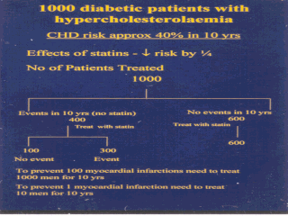 coronary heart disease risk approximately 40% over next 10 years, with the use of statins,