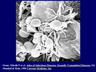 Ciliated cells with attached gonococci.organisms to ciliated cells is demonstrated.