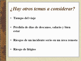 Apoyar una expedición tiene riesgos. Es importante considerar todas las consecuencias posibles y manejar esos riesgos en forma adecuada.