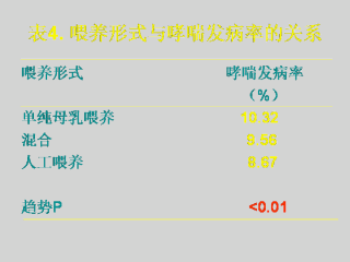 指出哮喘发病率随着母乳喂养影响的增加而显著增加。