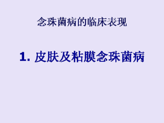 细胞缺陷者);外阴阴道感染(糖尿病、妊娠、抗生素治疗);皮肤念珠菌病(皮肤损伤、烧伤、浸渍);甲癣;严重联合免疫缺陷病患者粘膜皮肤念珠菌病。
