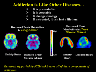 glucose uptake) in the brain and heart, one can see that both addiction and