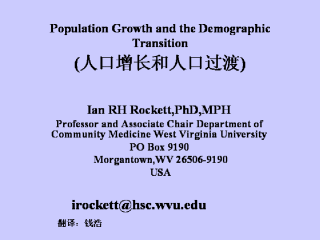 在追求更高学位之前,我既关切于世界人口爆炸问题又为之所深深吸引。我的幼稚的假设是人口出生率推动造成了这一倾向。通过有关人口统计学的毕业学习,我接触到了人口过渡理论,这使我认识到实际上是长期的死亡率降低刺激了人口的爆炸性增长。后续的流行病学研究使我认识到了人口统计学和流行病学之间的交迭,并让我能更充分地认识到流行病过渡的理论起源于并扩展了人口过渡理论。