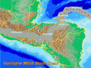hemisphere. Hurricane Mitch, carrying 180-mph winds at its height on October 26