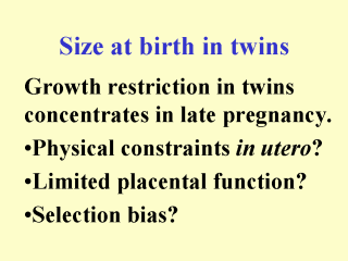 | In late pregnancy the growth of twins is