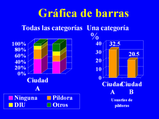 frecuencia o frecuencia relativa (porcentaje) para cada categoría.