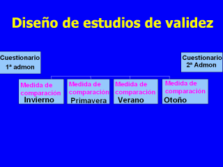 comparación, el diseño del estudio de validación deberá ser considerado. - En este ejemplo de estudio de validación, el cuestionario fue administrado al inicio del año. Cuatro mediciones comparativas fueron administradas durante cada estación. Después de un año adicional, el cuestionario fue administrado para una segunda vez. |
