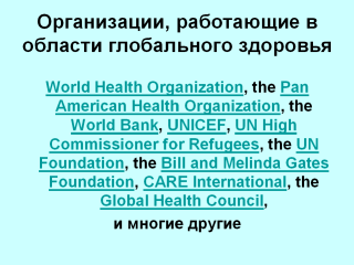 структур, глобально занимающихся проблемами здоровья.