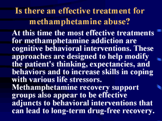 | There are currently no particular pharmacological treatments for dependence on amphetamine or amphetamine-like drugs such as methamphetamine. |