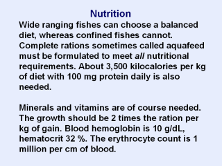 suspected, "There are 1.000 fish in the raceway. The average age size as determined by weighing a representative sample and counting the nimber, is 540 fish per kg and water temperature is 16 C. The feeding level is 5.3 % of the total fish weight per day. Folic acid was 2.2 mg per kg of ration.