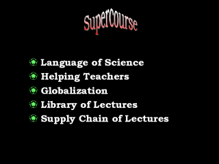 Part I of this lecture? The Supercourse is very different than any other form of learning. It is Internet Learning, and consists of 5different components each one of which have rarely been used. All 5 components have never been used together, until now. This combination serves as a very powerful tool, for the manufacture, distribution and utilization of lectures. |