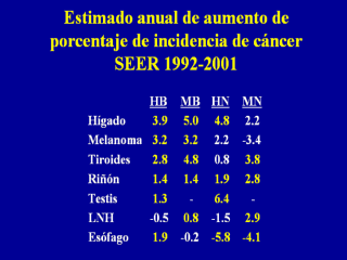 la población de EUA, como cáncer de hígado, melanoma, cáncer de