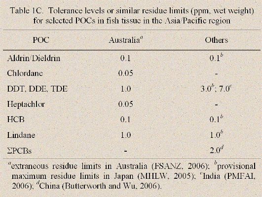residue limits) are in parts per million (ppm; mg of contaminant per kg of